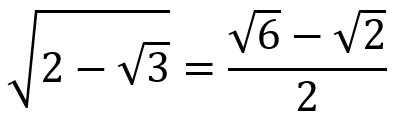 The above answer has one square root inside of another. There is a clever way to rewrite this without using a nested square root. Rewrite 8 as 6 + 2. The reason behind this is that (sqrt(6))² = 6 and (sqrt(2))² = 2. If you “foil” out (sqrt(6) – sqrt(2))², you get 6 – 2sqrt(12) + 2 = 8 – 4sqrt(3) because sqrt(12) = sqrt(4) × sqrt(3) = 2 sqrt(3) such that 2sqrt(12) = 2(2)sqrt(3) = 4 sqrt(3). If you’re still not convinced, note that sqrt(8 – 4sqrt(3)) is approximately 1.03527618 on a calculator, and that sqrt(6) – sqrt(2) is also approximately 1.03527618 on a calculator.