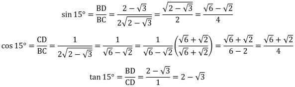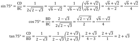 SINE, COSINE, AND TANGENT OF 15° AND 75°