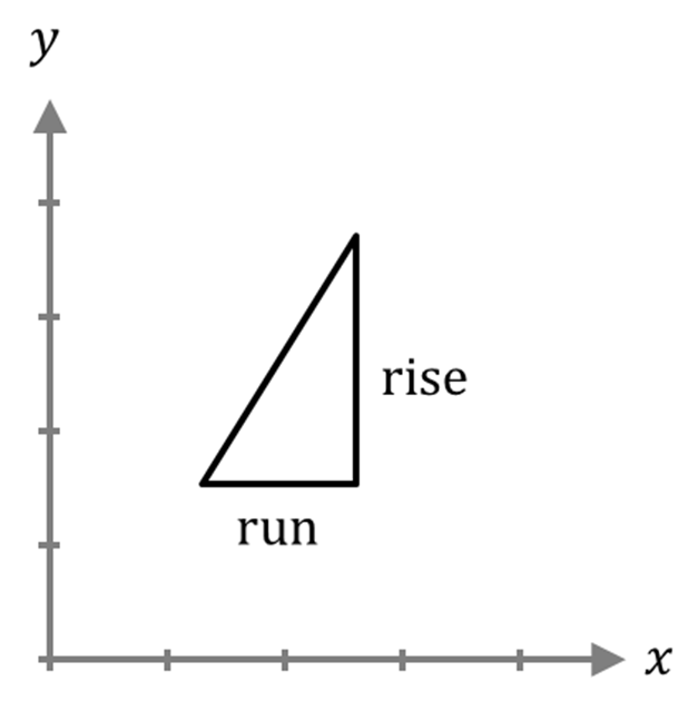The slope of a straight line equals rise over run.